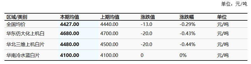 Domestic Recycled PET Mainstream Market Price Weekly Fluctuation Table