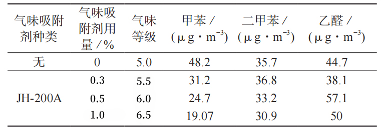 Table: Effects of Jiahe Deodorant and Its Dosage on the Odor and VOCs Content of PP Composites