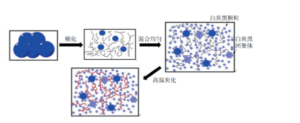 Zhang Yongjun and others used glucose as a modifier to coat the surface of silica through a carbonization method. The mechanism of carbon-coated silica is shown in Figure 1, and they studied the effect of glucose content on the comprehensive performance of rubber reinforced with silica. The results indicate that the dispersion of modified silica prepared by glucose carbon coating is significantly improved, and the comprehensive mechanical properties and processing performance of the rubber are enhanced.