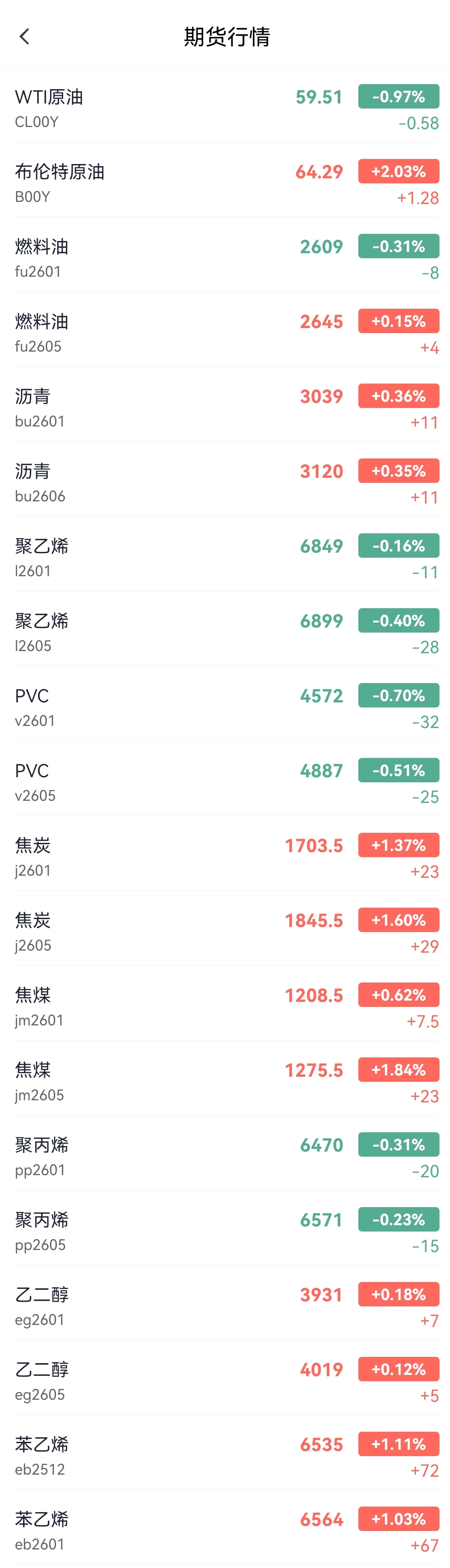 Styrene contract 2601 is quoted at 6564 yuan/ton, up 1.03% compared to the previous trading day.
