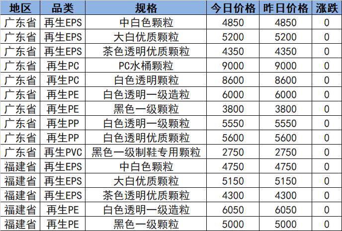 Summary: New Prices for the South China Recycled Plastic Market on the Morning of December 9th! The South China recycled market remains stable across the board, with Guangdong recycled EPS priced at 4350-5200, recycled PE at 3800-6000, and Fujian recycled PE at 5000-6050. Upstream cost support leads holders to maintain prices, while downstream demand is weak and mainly based on just-in-time needs. Overall, market transactions are sluggish, with both buyers and sellers cautiously observing.