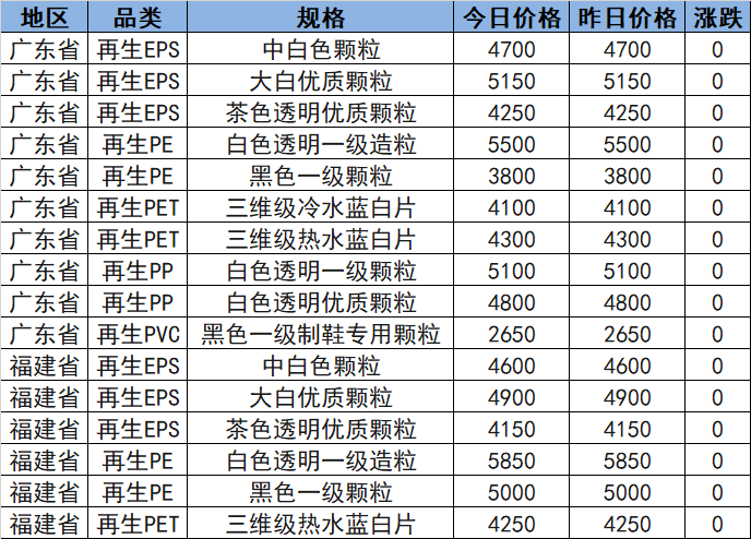 Summary: Morning prices for the recycled plastics market in South China on March 6! The South China recycled plastics market remained stable across the board. In Guangdong, recycled PP was quoted at 4,800–5,100 RMB/ton; recycled PE at 3,800–5,500 RMB/ton; and recycled PET at 4,100–4,300 RMB/ton. In Fujian, recycled PE was quoted at 5,000–5,850 RMB/ton. The market is consolidating, with companies fulfilling prior orders and shipping goods. Demand remains weak, market sentiment is sluggish, and spot transactions are scarce.