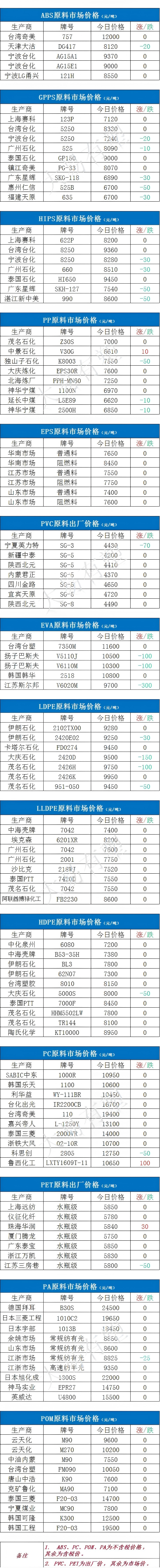 Latest plastic prices as of October 22.