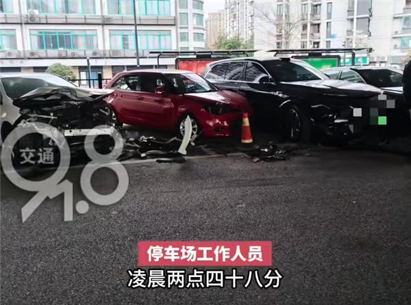 In the parking lot, a total of seven cars were damaged, five of which were directly hit, and two had their rear windshields broken by flying debris. Fortunately, there was no one in the parked cars at the time, and the driver who caused the accident was not injured.
