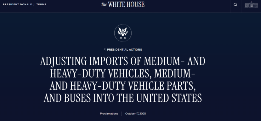 According to a Reuters report, on October 17, U.S. President Trump signed an executive order to expand the scope of credits related to American automobile and engine production, and starting from November 1, to impose a new 25% tariff on imports of medium and heavy trucks and components.