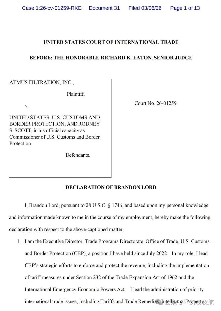 On Friday, March 6, a hearing regarding the refund issue will be held at the Court of International Trade.U.S. Customs submitted a 13-page court brief to the U.S. Court of International Trade.。