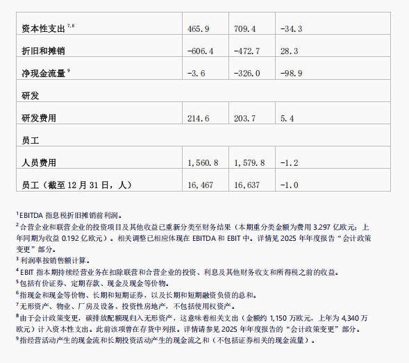 • 2026 Outlook: Sales are expected to achieve low-single-digit percentage growth, and EBITDA is projected to be between €550 million and €700 million.