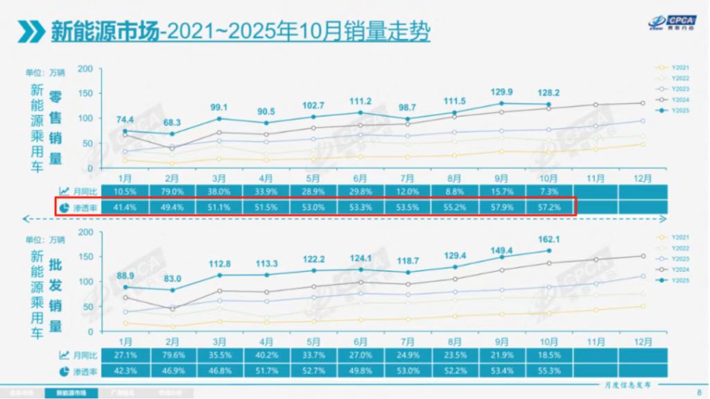 Image / New Energy Vehicle Penetration Rate Trend from January to October 2025 Source / Internet New Energy View Screenshot