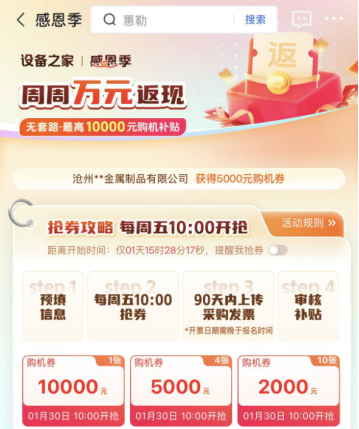 Tight procurement budget? Get a direct boost with a 10,000 yuan cashback!Each week, DeviceHome gives away 15 significant cashback coupons, including one 10,000 yuan cashback coupon and five 5,000 yuan cashback coupons. No gimmicks, directly deduct from your procurement costs. Super simple coupon grabbing guide: Step 1, register your purchase intention on the platform to lock in your coupon grabbing qualification; Step 2, be ready on the activity page every Friday at 10:00 AM sharp and grab coupons with lightning speed; Step 3, upload your purchase invoice within 90 days, and get a direct cash rebate after approval! Layered benefits, further reducing the unit price of equipment.