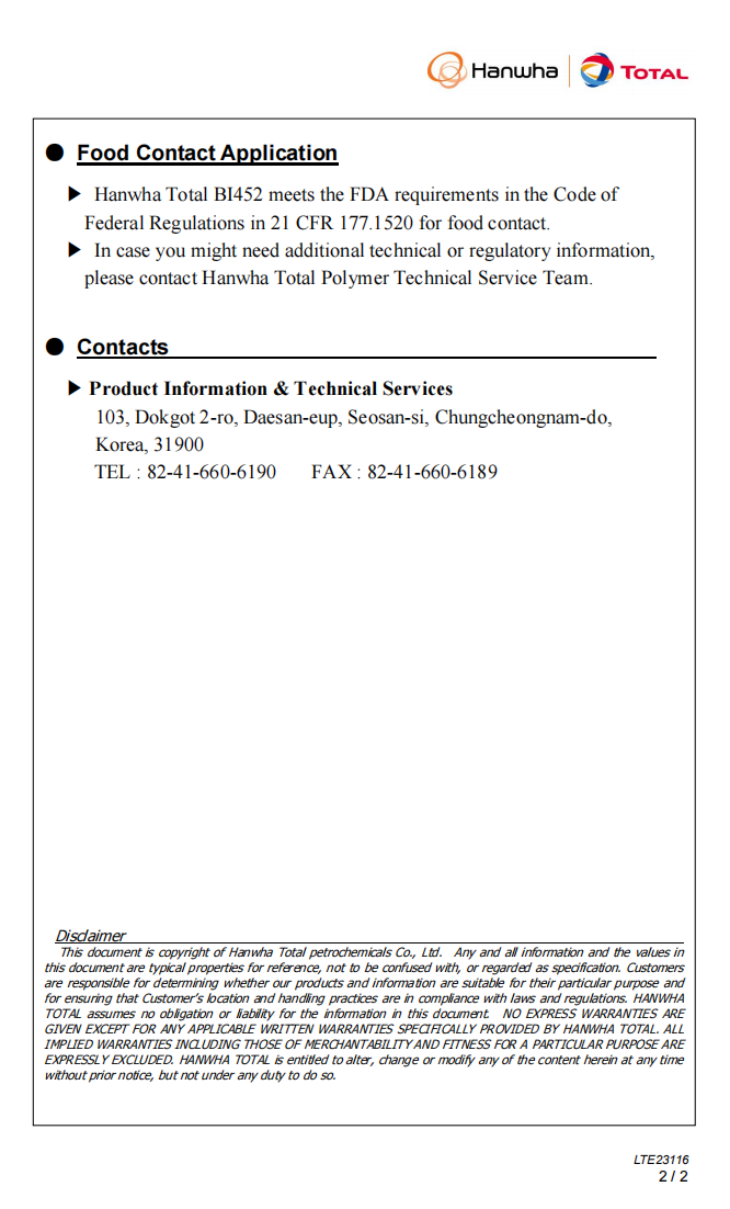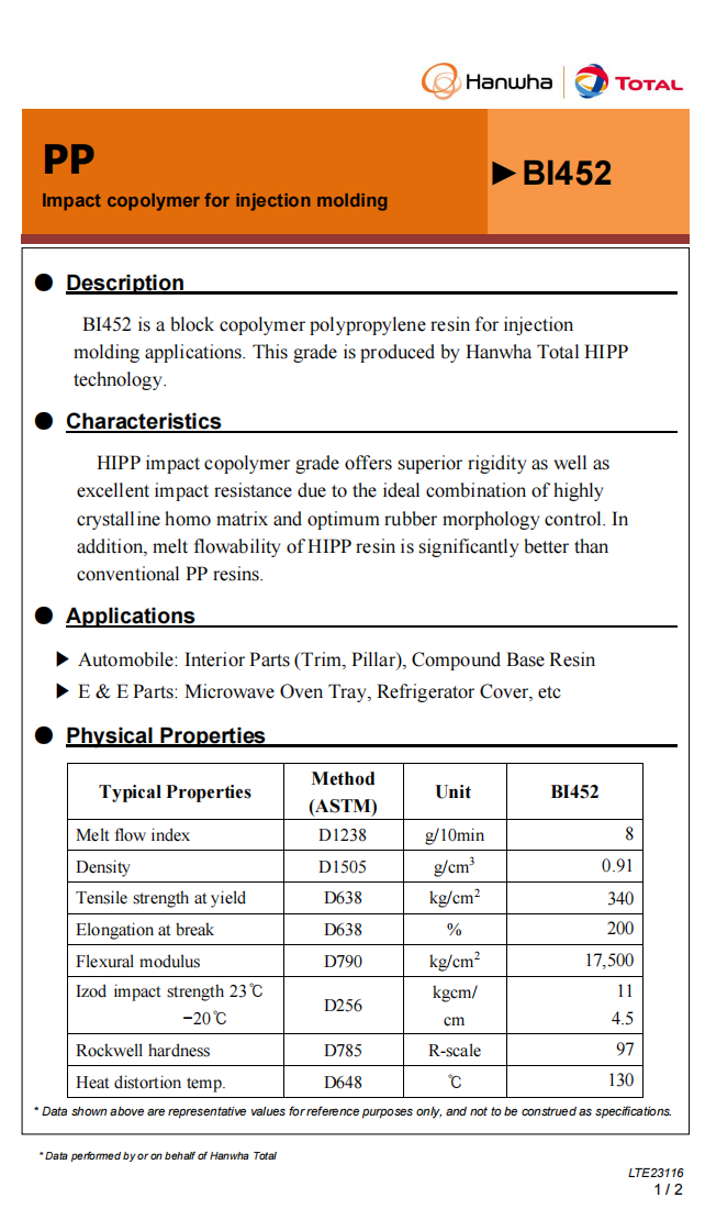 "We are looking for BI452 is a block copolymer polypropylene resin for injection molding applications.