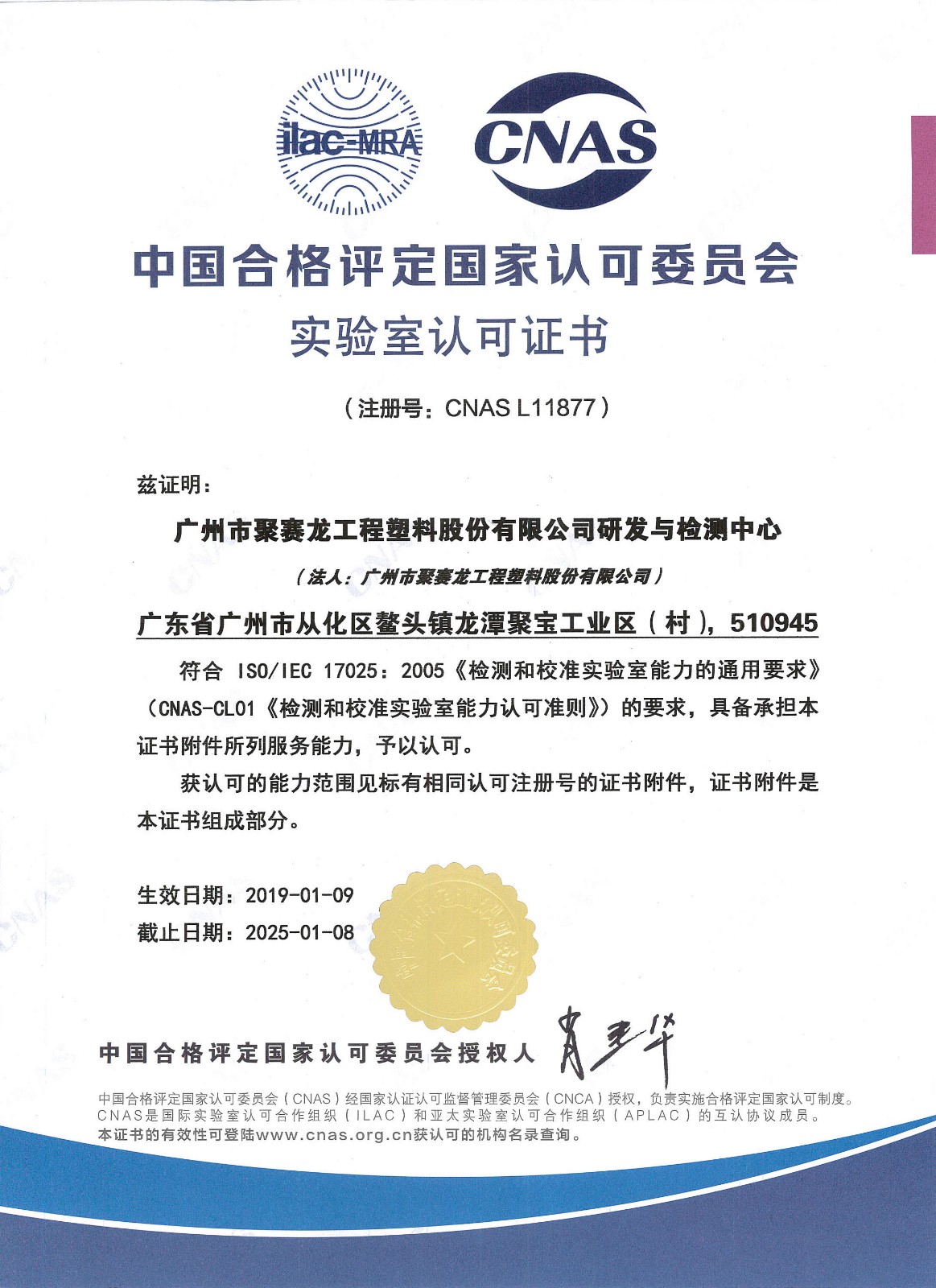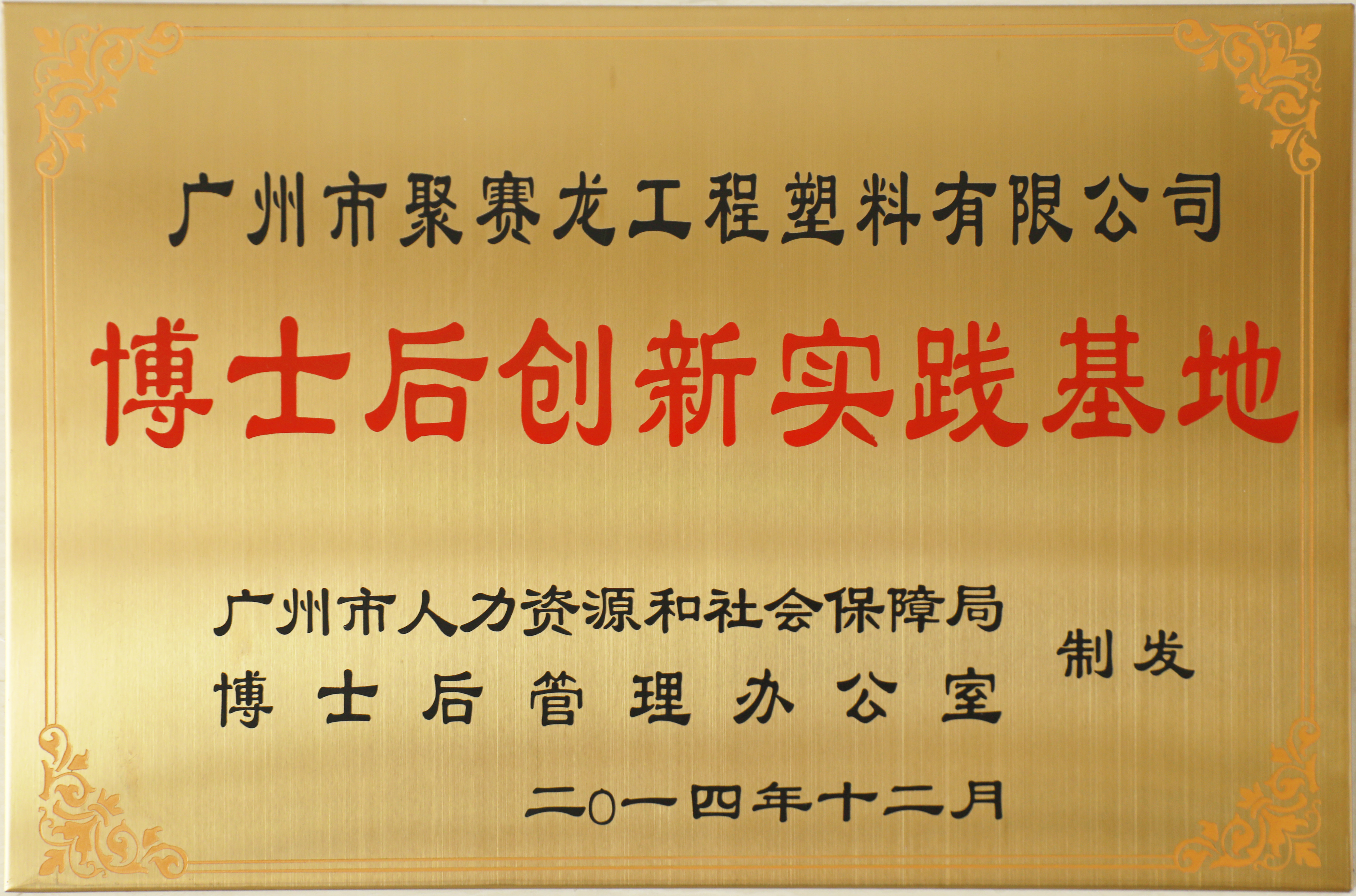 The company has established a polymer materials R&D center and a series of specialized laboratories. In 2005, it was recognized as the "Guangzhou Engineering Technology Research and Development Center." In 2012, it founded the "National Science and Technology Innovation Base Jusailong Public Technology R&D Platform." In 2013, it established the "Guangdong Engineering Plastic High-Performance (Jusailong) Engineering Technology Research Center." In 2014, it set up the "Guangzhou Postdoctoral Innovation Base," "Guangzhou Municipal Enterprise Technology Center," and "Guangzhou Key Laboratory of Thermoplastic Functional Polymers." In 2015, the studio was recognized as the "Guangdong Model Worker Innovation Studio," and the "Guangdong Provincial Enterprise Technology Center" and "National Science and Technology Innovation Base Jusailong Laser Forming Thermoplastic Polymer Materials Public R&D Platform" were established. In 2016, the studio was recognized as the "Demonstration Guangdong Model Worker Innovation Studio." In 2018, the laboratory under the R&D center was recognized as a "National (CNAS) Accredited Laboratory."
