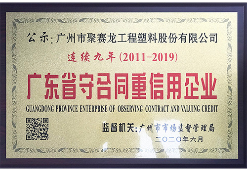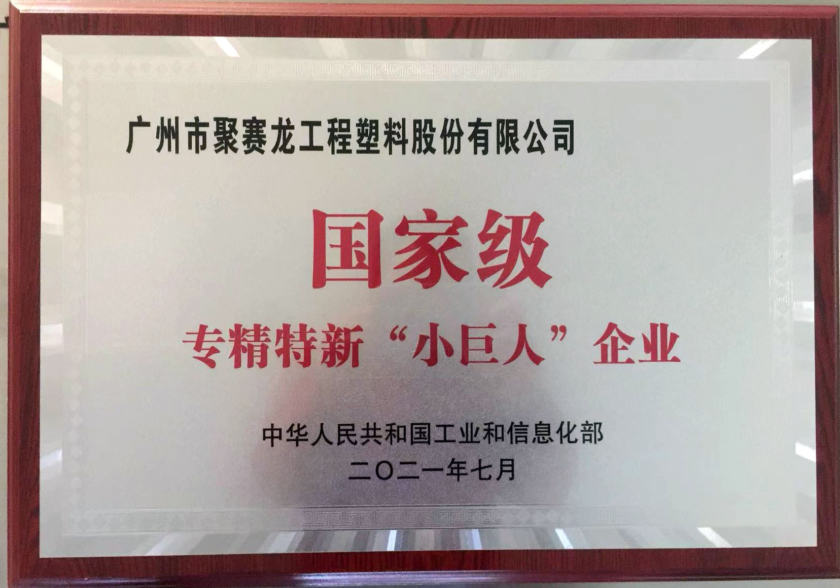 **Scientific and Technological Achievements:** As of December 31, 2021, the company has obtained 56 authorized invention patents, including 1 foreign patent; 15 key new products at the national, provincial, and municipal levels; 4 national Torch Plan projects; 16 provincial and municipal science and technology progress awards; 84 high-tech products in Guangdong Province; 4 high-quality products in Guangdong Province; 2 key new materials in Guangzhou (first batch); and participated in drafting 16 national, industry, and group standards. Since 2008, the company has been recognized as a "National Technology Enterprise" for many consecutive years. It has won the title of "Guangdong Province Contract Honor Enterprise" for eleven consecutive years. In 2012, it was recognized as a "Guangzhou Innovative Enterprise" and "Guangzhou Patent Technology Industrialization Demonstration Enterprise" and achieved "4A-Level Standardization Good Behavior Enterprise." In 2013, it was named an "Intellectual Property Advantage Enterprise of Guangdong Province," and its modified polypropylene products were recognized as "Famous Products of Guangdong Province." In 2014, it was designated as an "Innovative Pilot Enterprise of Guangdong Province." In 2016, it was recognized as a "Clean Production Enterprise of Guangdong Province," and its trademark was identified as a "Famous Trademark of Guangdong Province." In 2015, it was recognized as an "Excellent Clean Production Enterprise of Guangzhou." In 2017, it was designated as a "Backbone Enterprise of Guangzhou Manufacturing Industry." In 2019, it was recognized as a "High-Growth Small and Medium-Sized Enterprise of Guangdong Province." In 2020, it was recognized as a "Specialized, Refined, Distinctive, and Innovative SME of Guangdong Province." In 2021, it was recognized as an "Advanced New Material Enterprise" and "Leading Private Enterprise of Guangzhou" and was designated as a national-level specialized, refined, distinctive, and innovative "Little Giant" enterprise by the Ministry of Industry and Information Technology.