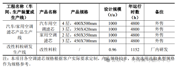 A total investment of RMB 26 million is planned to procure automatic mixing machines, parallel twin-screw extruders, melt-blown fabric extruders/reelers and other auxiliary equipment, edge-folding machines, and edge-trimming machines, for the construction of a biobased material products project (including automotive and household air-conditioning filters), with an expected annual production capacity of 4,000 tons of automotive and household air-conditioning filters.