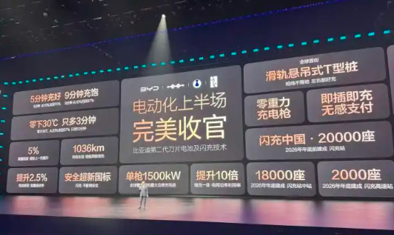Technical breakthroughs require network support. BYD also launches simultaneously.The "Flash Charge China" strategy plans to build 20,000 flash charging stations by the end of 2026. As of the day of the press conference, 4,239 stations have been completed.