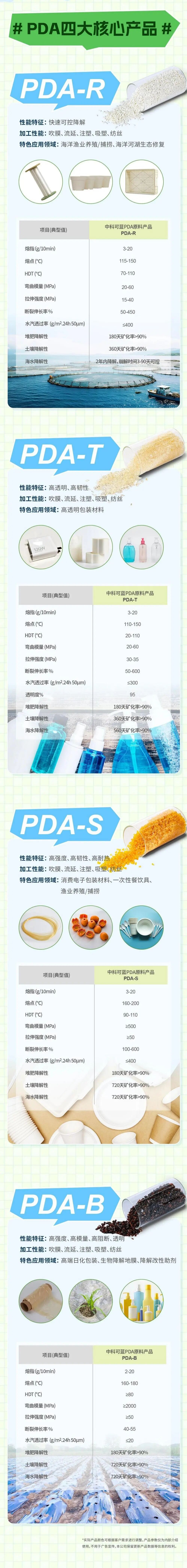 Zhongke Kelan has now formed a product matrix of PDA raw materials with four categories (PDA-R, PDA-T, PDA-S, PDA-B) and dozens of grades, which can meet the application requirements of plastic packaging upgrade and replacement in the 3C, daily chemicals, cosmetics, and medical fields, as well as high-growth market areas such as ecological agriculture, marine farms, offshore operations, and 3D printing materials.