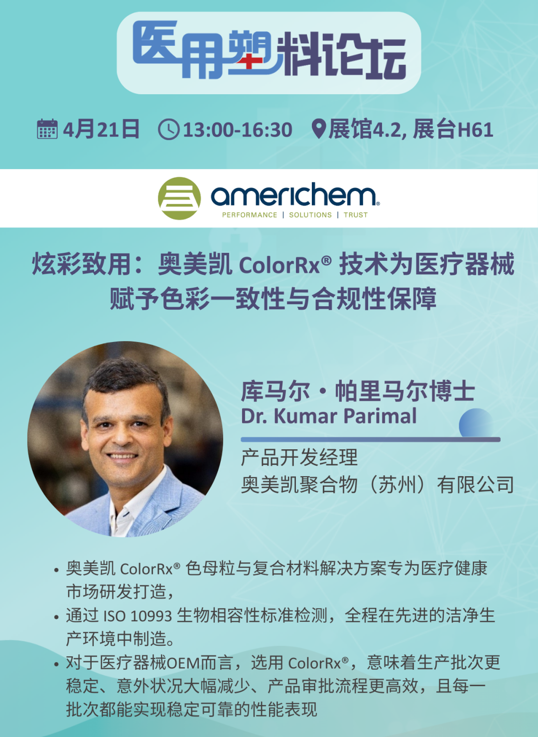 At CHINAPLAS 2026, Aomeikai's three major concurrent events will make a powerful debut: the Technology Stage offers in-depth insights into the latest technologies in rubber and plastic materials, the Medical Plastics Forum focuses on the innovative applications of medical-grade modified materials, and the Product Innovation Hub showcases outstanding innovative products in the fields of fiber and medical. From R&D to practical application, the full-chain solutions are presented on-site, firmly supporting enterprises in building core competitiveness.