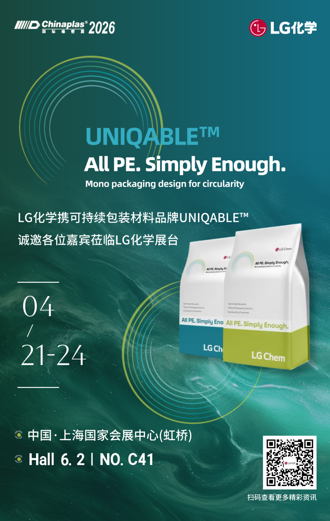 During CHINAPLAS 2026, LG Chem will focus on launching ultra-thin packaging films.The sustainable materials brand UNIQABLE™ encompasses product lines such as MDOPE and BOPE.Fully demonstrate LG Chem's next-generation eco-friendly packaging solutions and high-performance film materials and other innovative products and technologies.