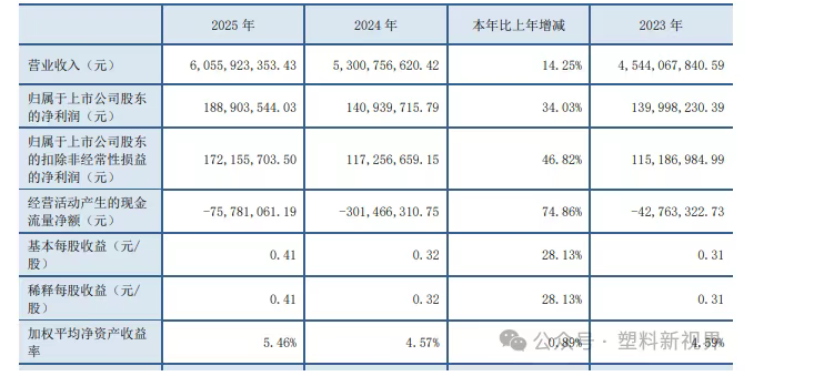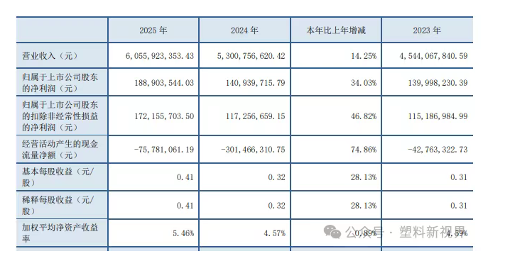 In 2025, the company achieved revenue of 6.056 billion yuan, an increase of 14.25% year-over-year; net profit attributable to shareholders was 189 million yuan, an increase of 34.03% year-over-year; and net profit excluding non-recurring items was 172 million yuan, an increase of 46.82% year-over-year, indicating a significant improvement in profit quality.