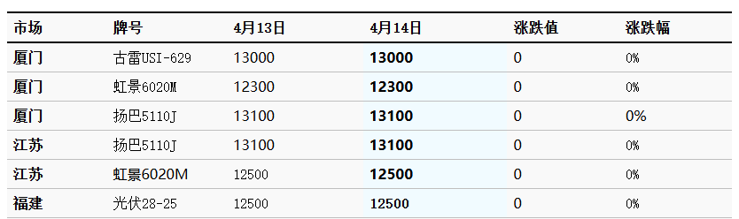 1Ethylene: On April 13, CFR Northeast Asia was stable at $1,425/ton, and CFR Southeast Asia was stable at $1,475/ton. Sinopec Huaxia Sales Company's ethylene price remains stable at 9800 yuan/ton, and Jinshan Liantao's ethylene price is also synchronized to 9800 yuan/ton.