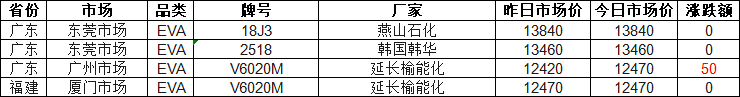 Zhuanshu World statistics show that as of 11:00 AM on April 10th, the EVA market in various regions across the country is stable with a slight increase! 75% of the market quotes remain stable, with the highest increase being 50 yuan. The current quote for Yanchang Yulin Energy Chemical V6020M in the Guangzhou market is 12,470 yuan. Today, the EVA quote range for the entire market is 12,470 to 13,840 yuan, with the market median at 12,965 yuan.