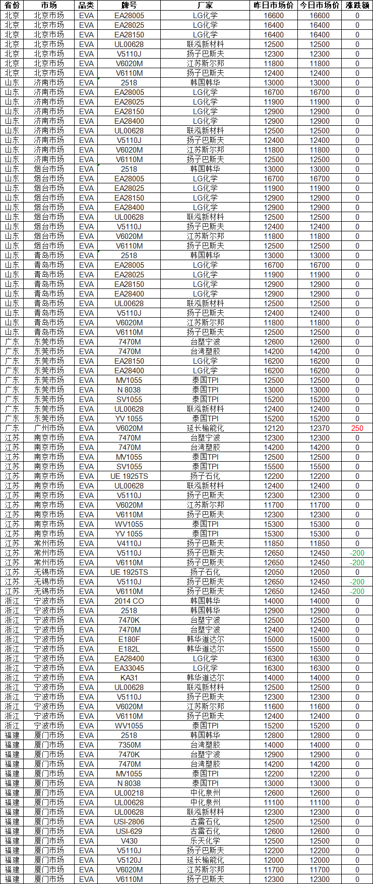 EVA Morning Price: EVA Market Stable with Small Declines on April 29th! Up to 200 Yuan Drop!