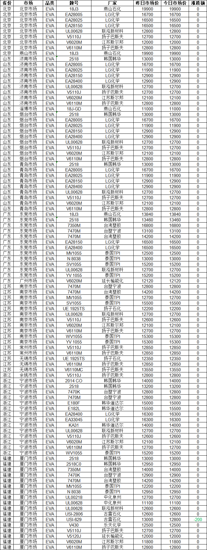 [Eva Price Summary] Eva Market Prices Steady With Some Drops, Up to 200 Yuan Decrease!