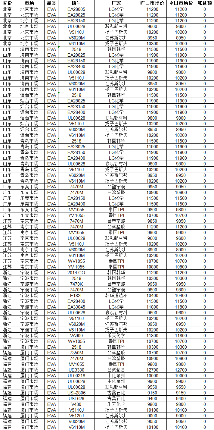 Today, the EVA market price range across the whole market is 8900-12700 yuan, with a market median of 10200 yuan.