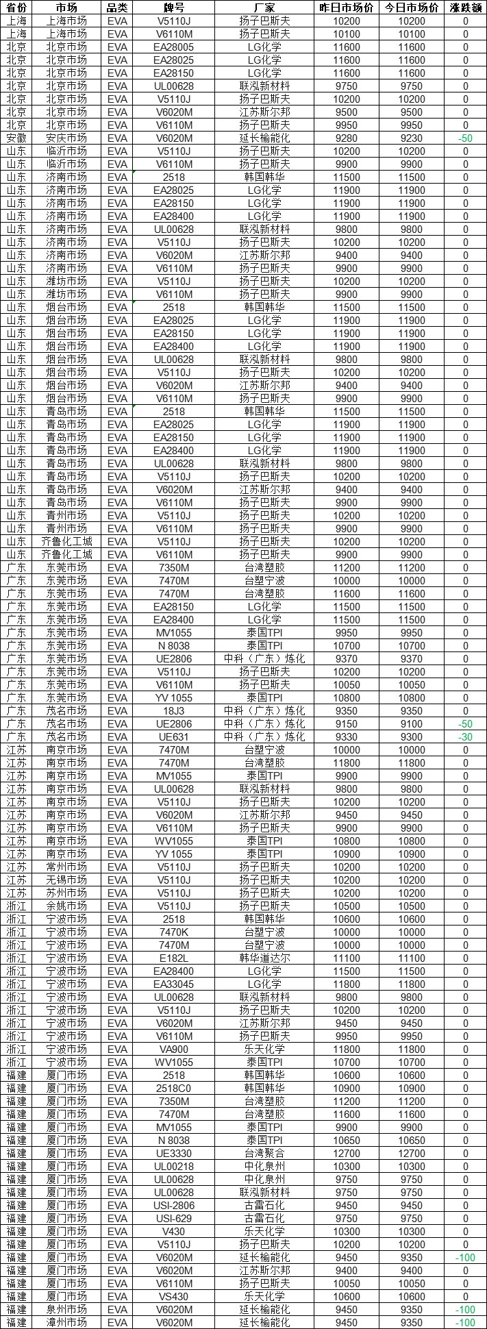 [EVA Quotation Summary] EVA Market Steady With Declines on November 28, Dropping Up to 100 Yuan!