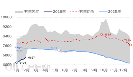 This week, polypropylene prices rose strongly. As of the 29th, the national average price of raffia was 6627 yuan/ton, an increase of 152 yuan/ton or 2.35% compared to last week. This week, the polypropylene market rebounded again. Geopolitical uncertainties in Iran persist, leading to stronger crude oil performance. Additionally, a cold snap in the US has impacted refinery operations and raw material exports, improving market trading sentiment. Futures prices have risen significantly. On the spot market, maintenance turnarounds in January and February remain high, with tight supply in East and South China. Downstream demand and orders have picked up before the holiday, supporting continuous price increases. However, with the upcoming Chinese New Year holiday next week, demand is expected to decline seasonally, providing limited future support and casting doubt on the sustainability of the upward trend.