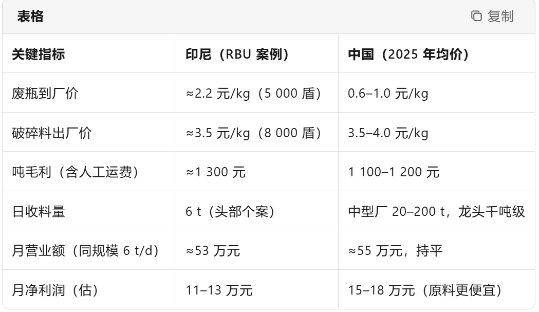 In Indonesia, "expensive upfront, same price at the back end," resulting in slightly lower net profit per ton; in China, a vast recycling network drives raw material costs down to the lowest in the world, resulting in thicker profits.
