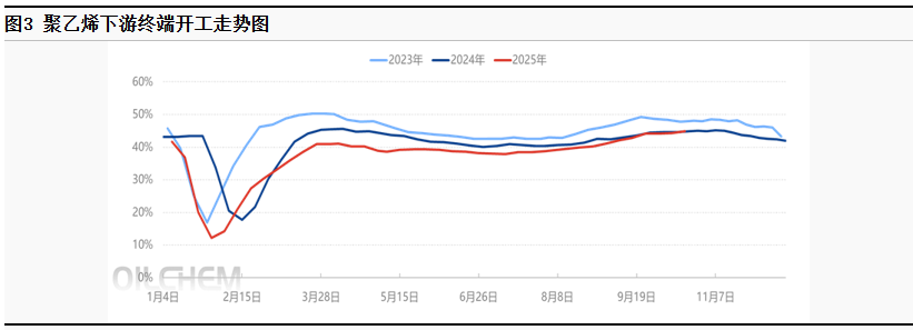 This week, the overall operating rate of downstream industries for polyethylene is 44.36%, an increase of 0.23% compared to last week, and is expected to rise by 0.56% next week.