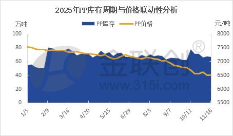 In 2025, China's polypropylene granule inventory cycle and prices exhibit a negative correlation, with rising inventories putting pressure on prices, while inventory reduction provides some support to prices. Specifically, the highest total inventory accumulation within the year occurs after the Spring Festival, followed by fluctuating reductions, after which the inventory increase phase appears.5The beginning of the month and10At the beginning of the month,5At the beginning of the month, inventory accumulation is significant. Midstream and upstream enterprises adopt price reduction strategies to ensure smooth inventory clearance.10At the beginning of the month, after returning from the National Day holiday, polypropylene inventory gradually increased from the low level before the holiday. In addition, the traditional peak season“Golden September and Silver October”Demand has not met ideal expectations, downstream users are cautious in purchasing, and companies lack the willingness to restock. Currently, the polypropylene inventory cycle has not yet bottomed out, and price rebounds lack certain support. Whether prices can rise from low levels in the future depends crucially on whether inventories can continue to deplete and whether there is improvement on the demand side.