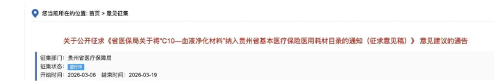 Inclusion of blood purification consumables in the medical insurance catalog
