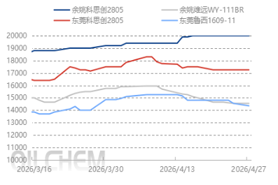 Currently, the domestic PC spot market remains weak. Although the price has dropped to a low level and the downward trend has slowed, the pressure on domestic material prices shows no sign of reversal. Considering the price spread between PC and bisphenol A, the overall profit margin for the PC industry remains relatively ideal, with most production enterprises maintaining stable high-load operations. With the arrival of the May Day holiday, factories have a demand to trade at lower prices to boost sales. However, downstream buyers remain relatively sluggish in pre-holiday procurement, and market transactions are unlikely to recover in the short term. It is expected that the domestic PC market will maintain a weak and oscillating trend. On Tuesday, attention should be paid to the auction dynamics of Zhejiang Petrochemical.