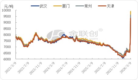 On March 9, PP2605 hit the daily trading limit at 8,034 RMB/ton. On the same day, spot prices of standard homopolymer polypropylene in East and North China surged by at least 2,000 RMB/ton, reaching 9,800 RMB/ton. Similarly, L2605 closed at its daily trading limit of 7,944 RMB/ton, while spot prices of standard linear polyethylene in East and North China also jumped by at least 2,000 RMB/ton, with most traders halting quotations and the few available offers reaching 9,700 RMB/ton. This shows that polyolefin spot prices were trading at a premium of at least 1,500 RMB/ton over futures prices.
