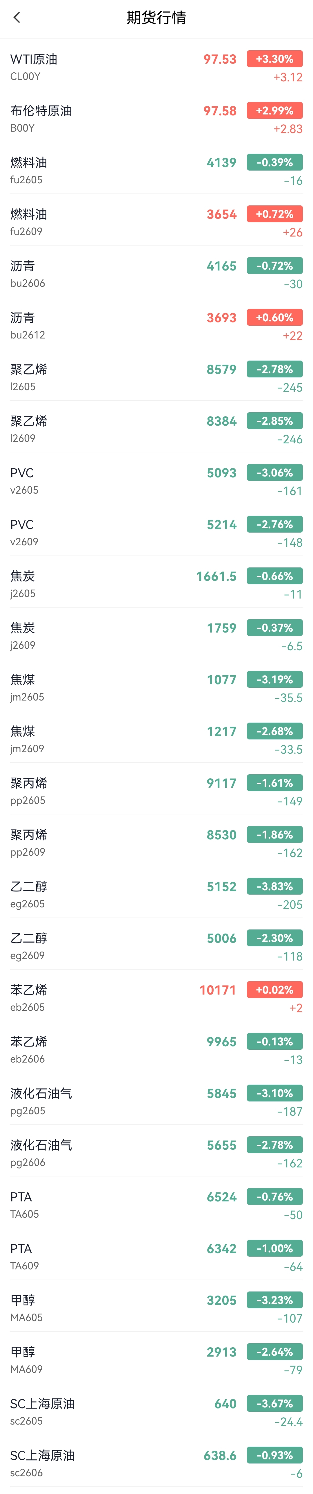 Amid sudden geopolitical shifts, international crude oil prices halted their previous sharp decline and rebounded rapidly, with geopolitical risk premiums returning. However, dragged down by domestic market sentiment, prior losses, and weak downstream demand, the domestic futures market saw more declines than gains during the midday session on April 9, with the energy and chemicals sector broadly correcting and market bulls and bears intensifying their tug-of-war.