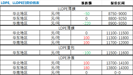 According to Zhuan Su Shi Jie statistics, on March 31, LLDPE prices in major domestic regions showed mostly declines with few increases, whereas LDPE prices showed mostly increases with few declines: LLDPE film prices in the North China market fell by RMB 50/ton; remained unchanged in the East China market; and dropped by RMB 220/ton in the South China market. LDPE film prices remained unchanged in the North China market; rose by RMB 100/ton in the East China market; and increased by RMB 100/ton in the South China market. LDPE heavy-duty bag prices declined by RMB 100/ton in the East China market; LDPE coating prices rose by RMB 100/ton in the North China market, increased by RMB 180/ton in the East China market, and remained unchanged in the South China market.