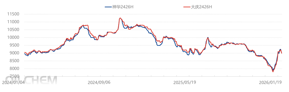 Starting in mid-January, as the situation in Iran eased, the market weakened and LDPE prices retreated from their highs. This was compounded by the start-up of Yulong Petrochemical's 300,000-ton LDPE/EVA plant, adding to supply pressure. On January 19th, the price of Shenhua 2426H fell to 8850 yuan/ton, a decrease of 450 yuan/ton from the high point on the 14th.