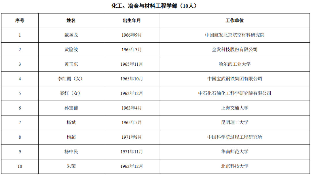 Notably, a group of experts from leading private technology enterprises have been elected, including technical heads from BYD, CATL, and Kingfa Sci. & Tech. This trend breaks the previous pattern where academicians were mostly concentrated in universities and state-owned research institutions.
