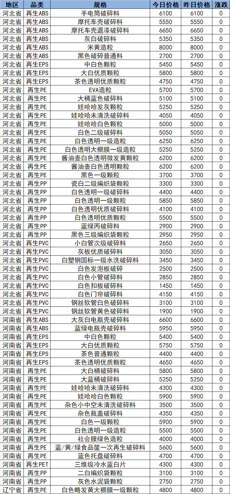 Summary: Morning Price Update for the North China Recycled Plastic Market on April 13! The North China recycled plastic market remained stable across the board. Recycled PE prices in Hebei Province ranged from RMB 3,700 to 6,250/ton; in Henan Province, from RMB 3,500 to 5,900/ton; and in Liaoning Province, at RMB 4,800/ton. The market remained sluggish but stable, with enterprises maintaining steady quotations. Downstream buyers placed inquiries mainly to fulfill immediate demand, and actual transactions were concluded via price negotiation.