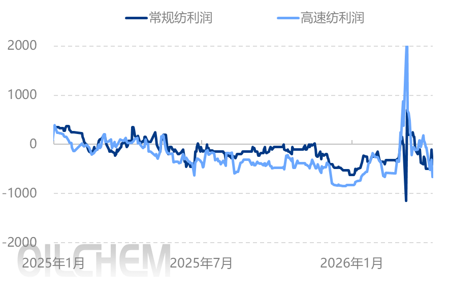 The profit of conventional spinning chip of polyamide 6 is -400 yuan/ton, and the profit of high-speed spinning is -665 yuan/ton. Ton.