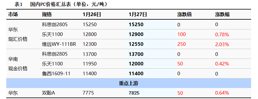Figure 1 East China PC Market Price Trend Chart (Unit: RMB/ton) |