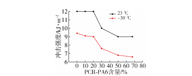 Figure 3 Impact of PCR-PA6 Content on the Impact Performance of PA6-GF30