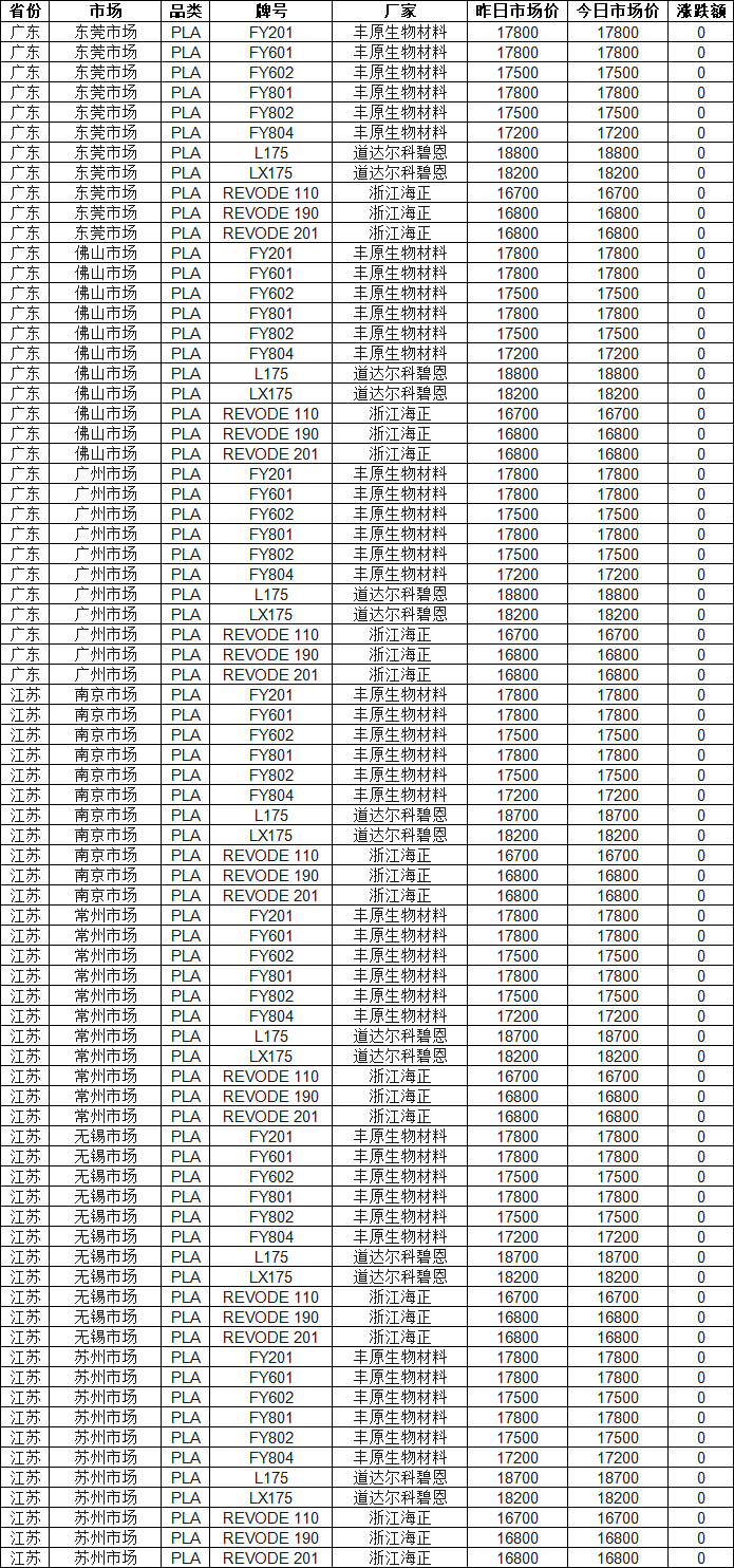 [Pla Early Market New Price] PLA Market Basically Stable on February 25! Most Market Quotes Unchanged