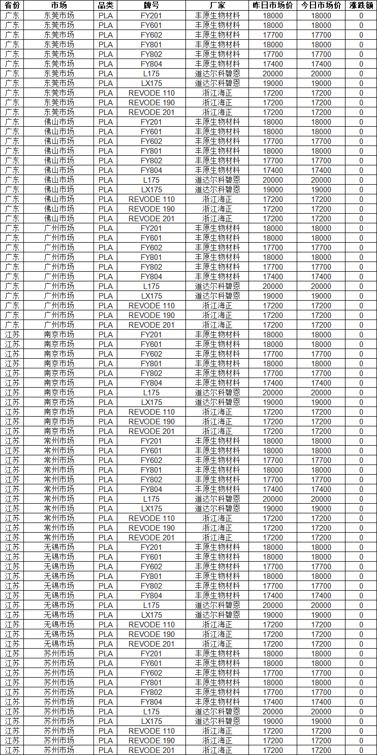 PLA Price Summary: PLA Market Basically Stable on April 27! Most Markets Keep Quotations Unchanged