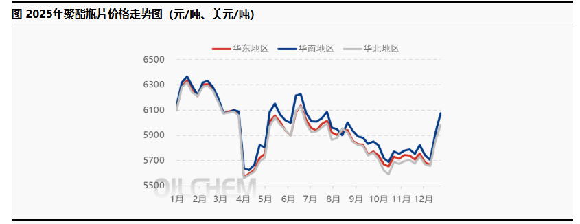 In January 2026, the domestic PET bottle chip market generally showed a warming trend, with prices starting low and rising later in the month. The average monthly price saw a significant increase month-on-month, with mainstream prices ranging from 5940-6500 yuan/ton. Looking at the performance in major markets, the average price in East China was 6123 yuan/ton in January, an increase of 327 yuan/ton from 5796 yuan/ton in December 2025, representing a month-on-month increase of 5.34%. Compared to January 2025, the price of 6238 yuan/ton, it was a year-on-year decrease of 1.84%. In South China, the average price in January was 6095 yuan/ton, up 321 yuan/ton from 5774 yuan/ton last month, a month-on-month increase of 5.27%. Compared to January of last year, 6272 yuan/ton, it was a year-on-year decrease of 2.82%. In North China, the average price in January was 6160 yuan/ton, an increase of 314 yuan/ton from 5846 yuan/ton last month, a month-on-month increase of 5.09%. Compared to January of last year, 6225 yuan/ton, it was a year-on-year decrease of 1.04%. The trend in all three major markets was consistent, showing month-on-month increases and slight year-on-year decreases.