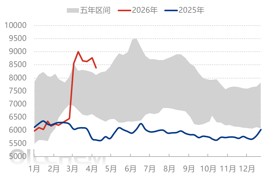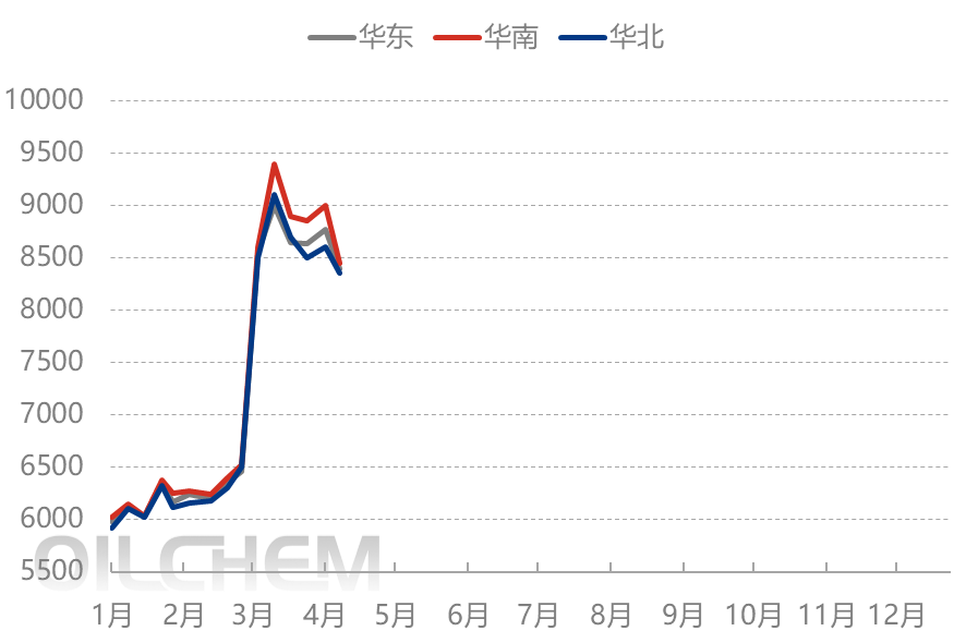 ① The mainstream factories’ April supply quotations range from RMB 8,900 to 9,100 per metric ton, with Yisheng’s basis at 600.
