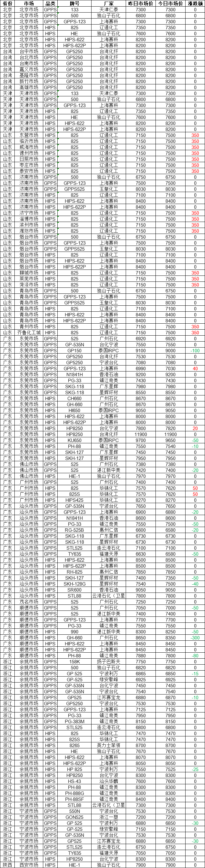 According to statistics from Zhuangsu Shijie, as of 16:00 on December 19, the PS market across the country is showing mixed trends! In the entire market, 14% of the quotes have increased, while 13% have decreased, with the highest increase being 350 yuan and the largest decrease being 300 yuan. Currently, the quote for Liaotong Chemical 825 in the Dongying market is 7500 yuan. Today's PS price range in the entire market is between 6580 and 11900 yuan, with a market median of 7530 yuan.