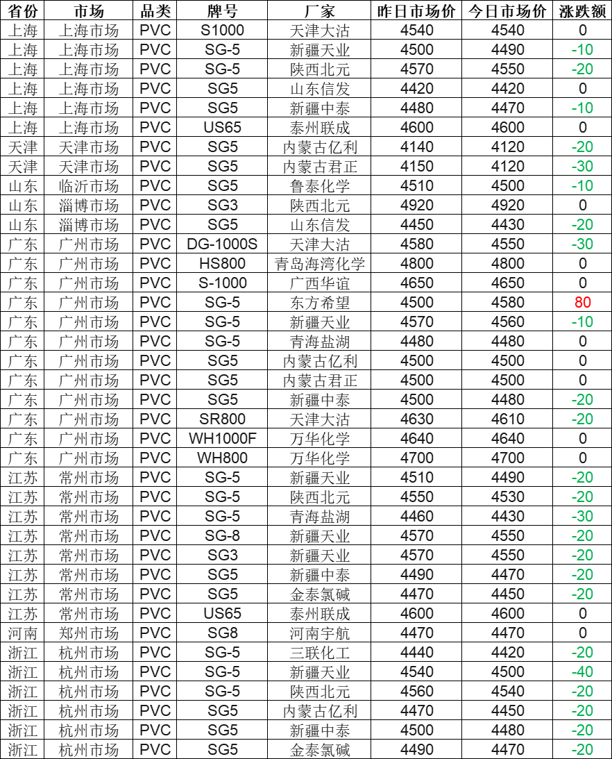 PVC Price Summary: November 26th PVC Market Mostly Sees Declines! General Drop of 10-40 Yuan