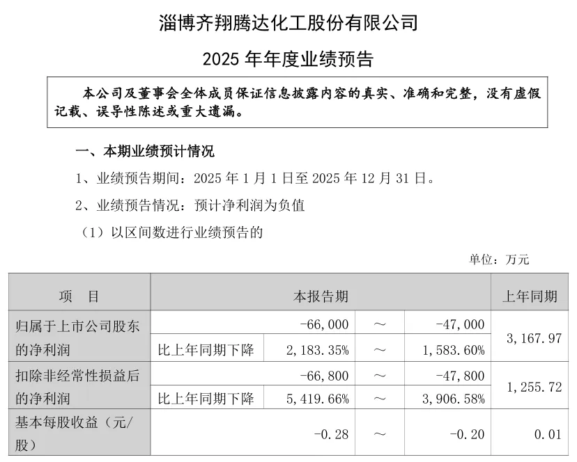 Recently, Qixiang Tengda released its 2025 annual results forecast, estimating a net profit attributable to shareholders of the parent company ranging from a loss of 470 million yuan to 660 million yuan, compared to a profit of 31.6797 million yuan in the same period last year. The estimated non-recurring net profit loss ranges from 478 million yuan to 668 million yuan, compared to a profit of 12.5572 million yuan in the same period last year.